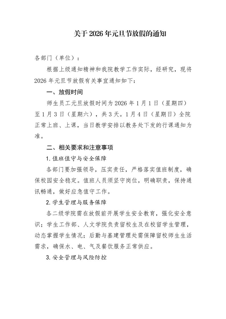 关于2026年元旦节放假的通知